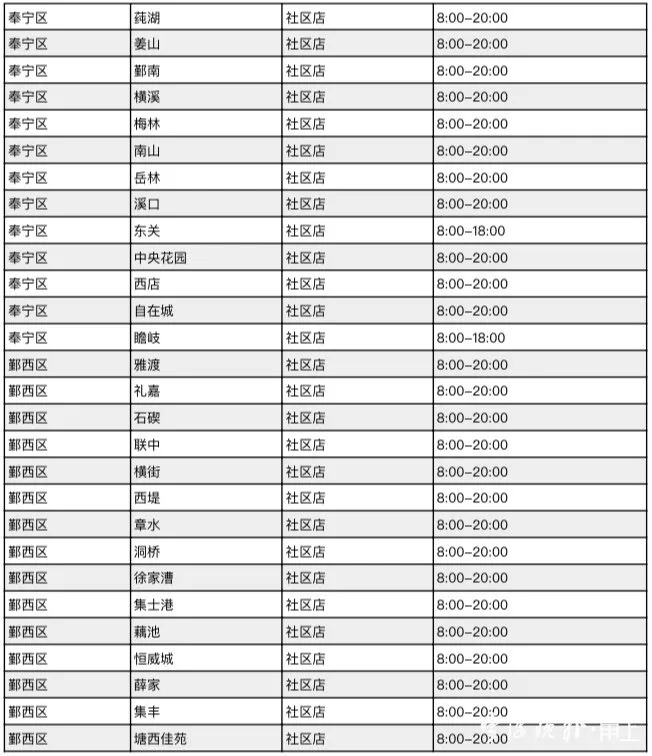海曙店8:00-20:00(3月2日起,恢复至6:00-22:00)