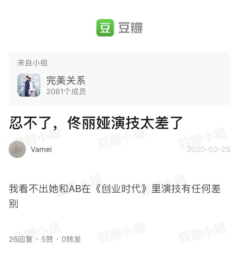所谓成也萧何败萧何,随着剧情发展,观众发现,《完美关系》剧情漏洞百出,在职场表达上迅速暴露了不足,公关专业性欠缺,被观众吐槽为“悬浮剧”。尤其是佟丽娅饰演的江达琳“人设崩坏”后,国内首部聚焦公关行业的职场剧再次让位于披着职场外衣的“玛丽苏”剧。