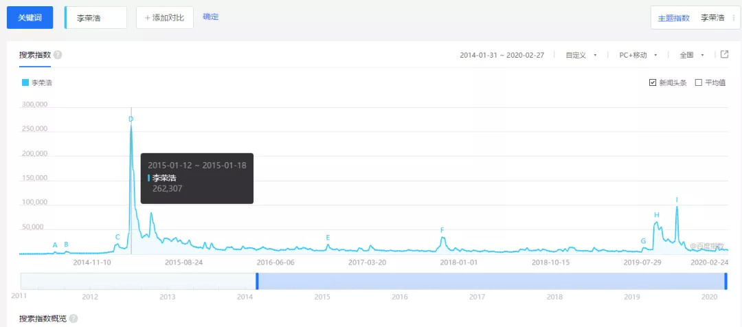 李荣浩的百度搜索指数在《我是歌手》踢馆期间达到最高