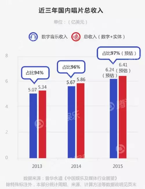 据2015年腾讯娱乐白皮书显示,2013-2015年国内唱片总收入持续增长,其中数字音乐收入占比逐步上升。而卖烤鸭的宋柯,也在这一年重操“CEO”旧业——出任阿里音乐CEO,从内容方转为平台方,离互联网更近了一步。