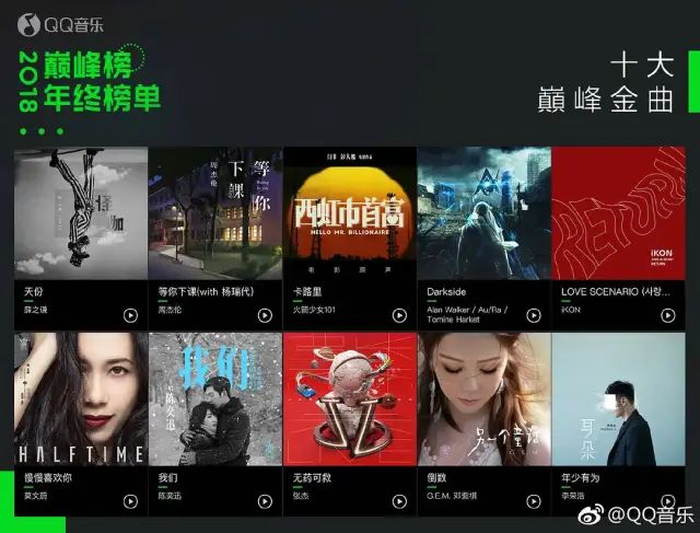《2018年QQ音乐巅峰年终榜》便是一份包含了“酸咸苦辣”的榜单。有周杰伦、陈奕迅这样的国民级歌手,也有火箭少女、蔡徐坤这样的偶像。