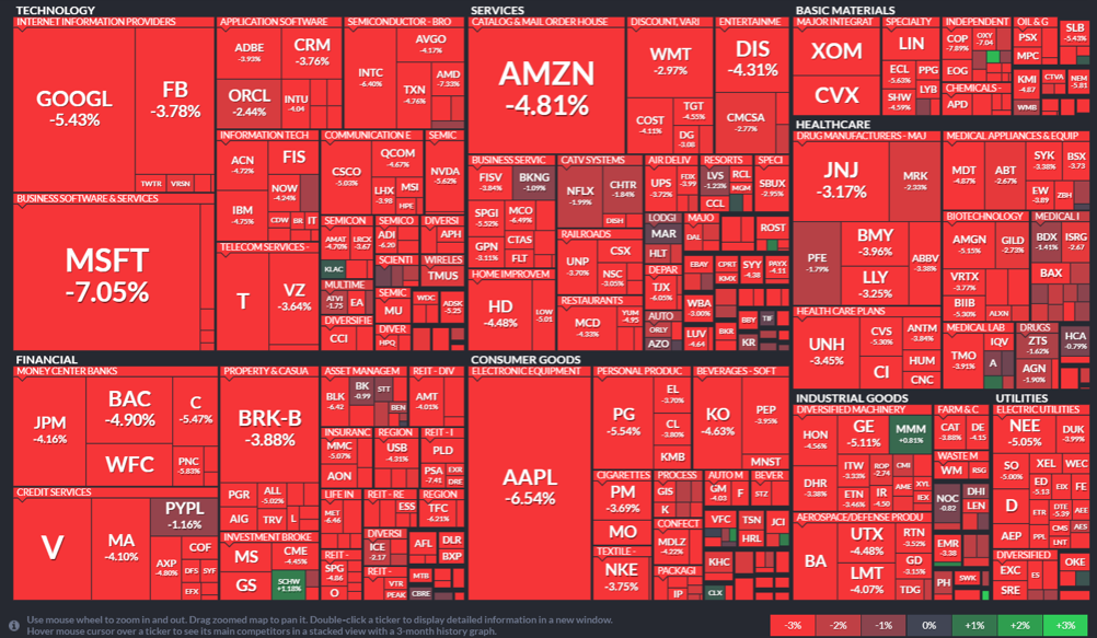 (2月27日标普500权重股普遍重挫 来源:FINVIZ.COM)