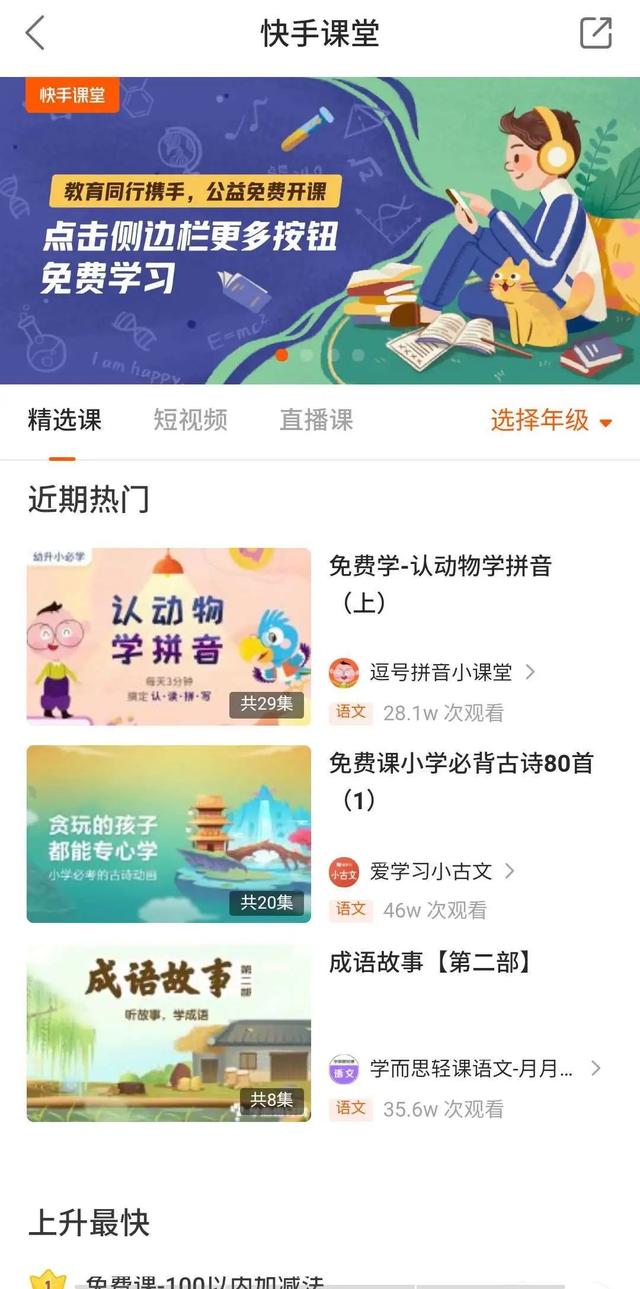有一点是可以肯定的,不止于课堂的学习需求,将带来更多可能和机会。不久前,快手侧边栏的“停课不停学”改名为“在家学习”,将作为独立入口长期存在。