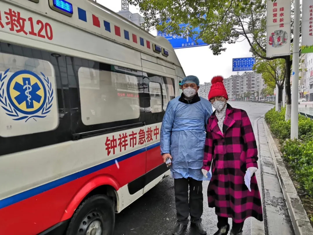 “看,前面那辆是不是钟祥市的救护车?”一名志愿者喊道。