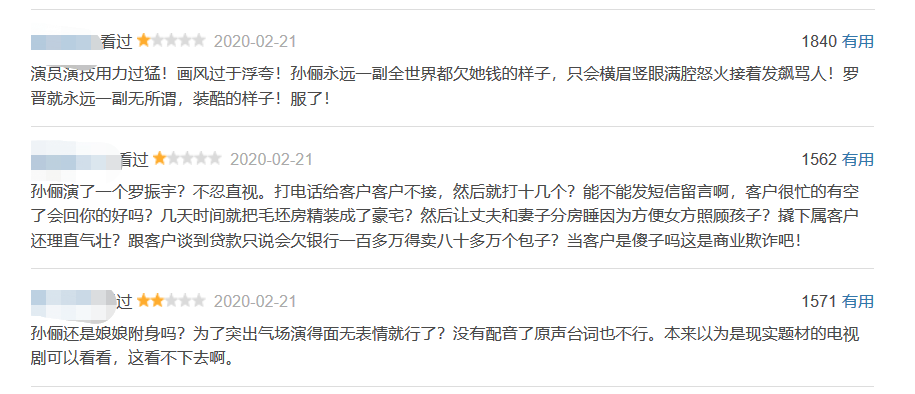 未观看过原版日剧的普通观众,更多是将目光聚焦在演员演技和故事剧情上,遗憾的是从目前的舆论中,以孙俪为首的主演演技均不被网友认可。“孙俪演技不沉稳,没有魅力,角色虚假”等评论在前期层出不穷。