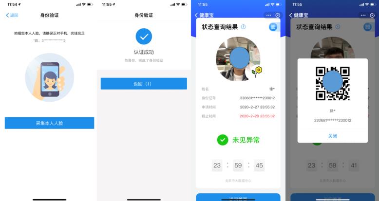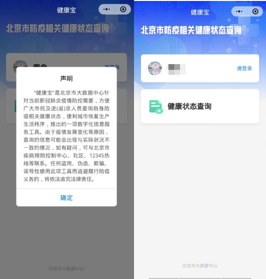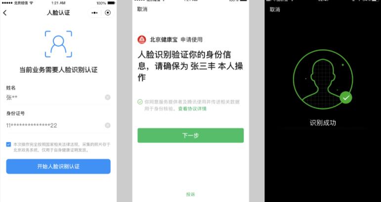 北京市民及进(返)京人员需要通过“北京健康宝”小程序进行实名认证。市民只需输入姓名和身份证号之后进行人脸识别认证,即可实现登录。人脸比对的认证方式能够确保个人健康信息真实、准确、有效,且不被冒用。
