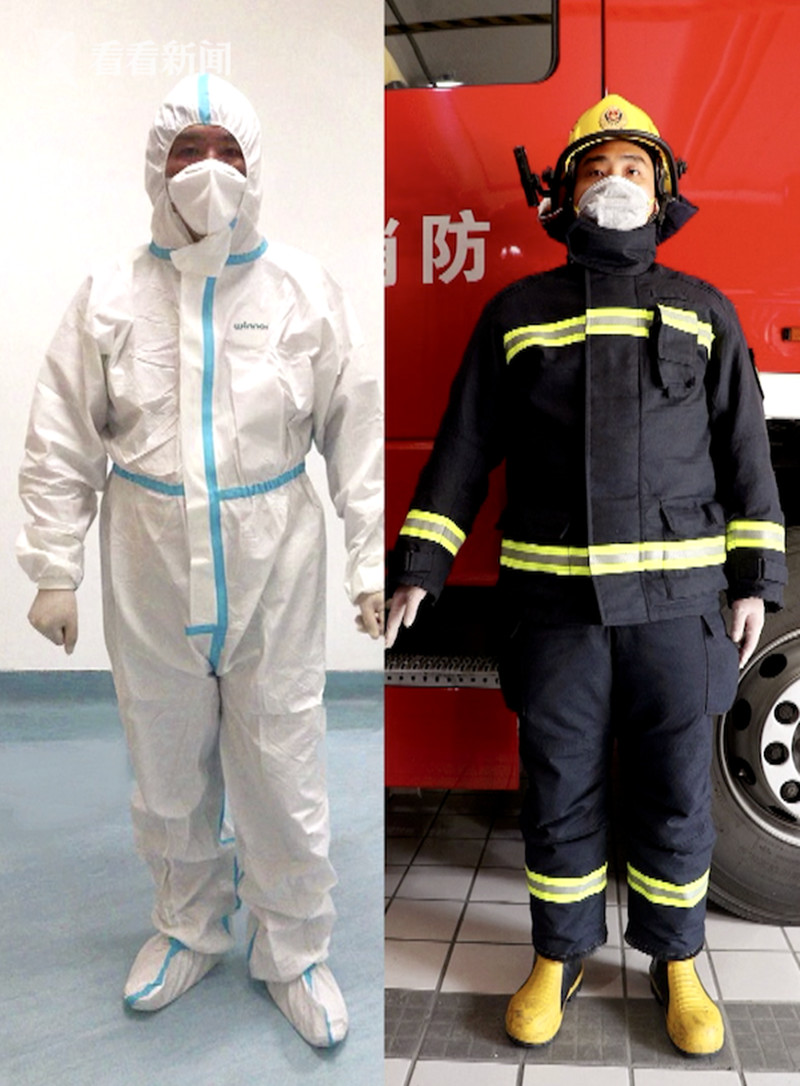 上海市长宁区有一对父子,父亲张弢是呼吸科医生,儿子张欣是消防员,面对疫情,他们告别欢聚,冲在前线,用行动诠释着“舍小家,顾大家”。 图片来源:看看新闻
