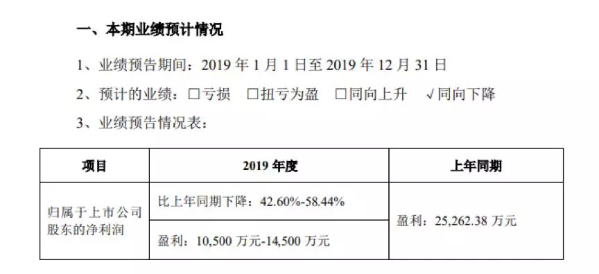数据显示,公司2019年实现营业收入12.85亿元,同比增长4.71%;实现归母净利润1.13亿元,同比减少55.15%。这一利润增速位于公司前期业绩预告的中间偏下位置。