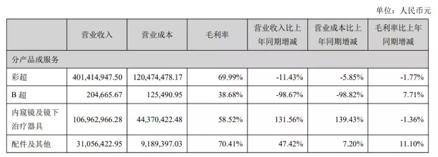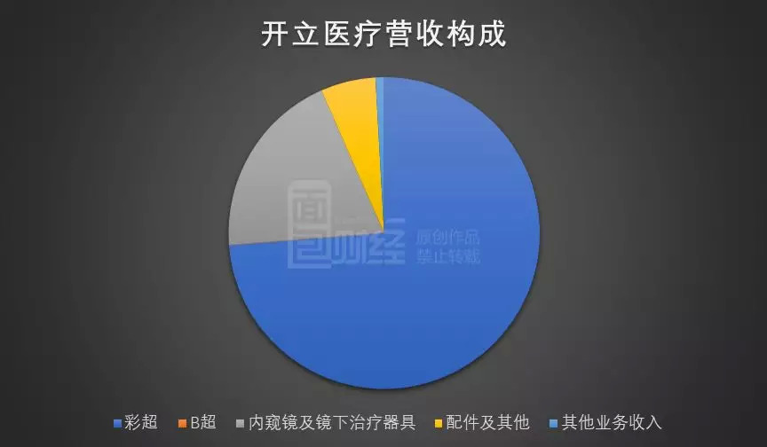 从2019年中期报告披露的营收构成来看,医用超声诊断设备(包括彩超、B超)是开立医疗最主要的收入来源,营收占比超过七成。