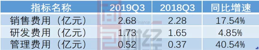 从2019年三季报来看,公司的销售费用、管理费用以及研发费用确实明显高于同期的营收增速。