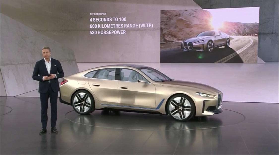 宝马集团设计高级副总裁霍伊顿克表示:纯电动BMW i4概念车的设计动感、简洁而又优雅,是一款实现了零排放的宝马车。