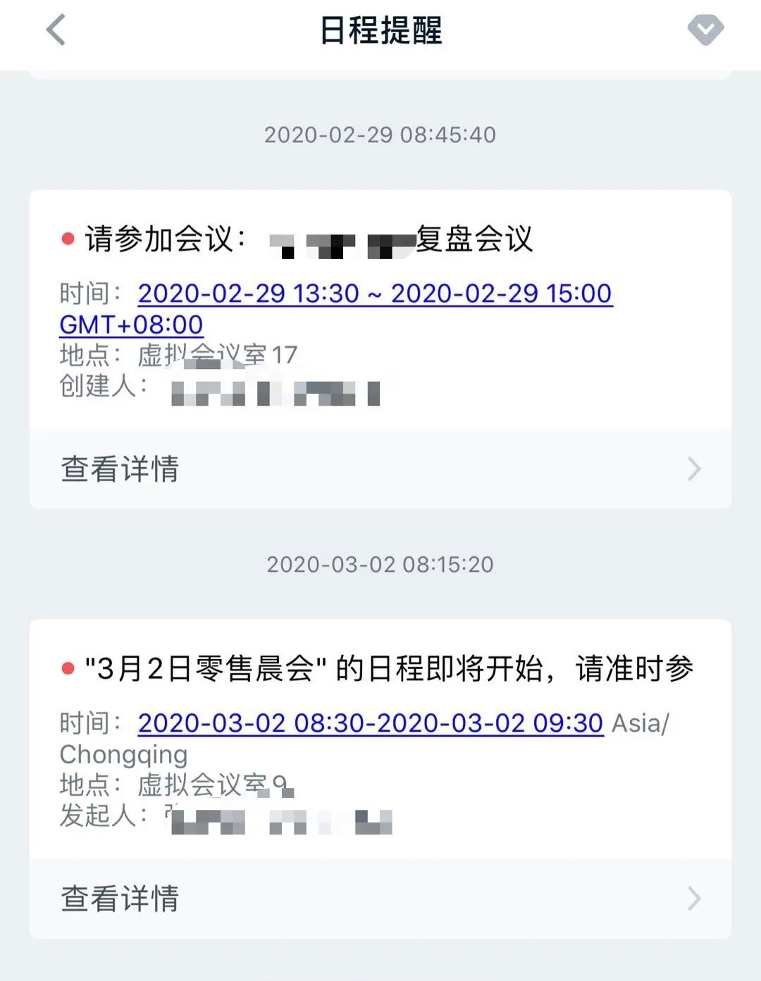 陈蓬所在公司的每日线上会议提醒