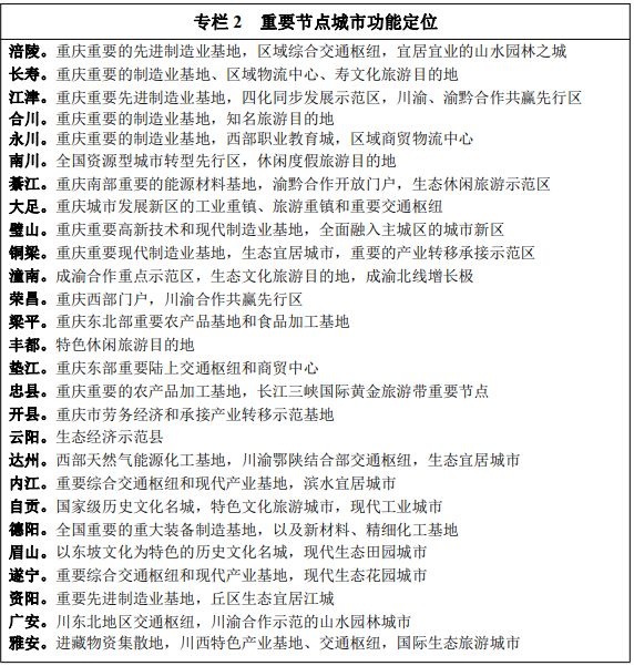2016年出台的《成渝城市群发展规划》,在“提升成都核心功能”时提到: