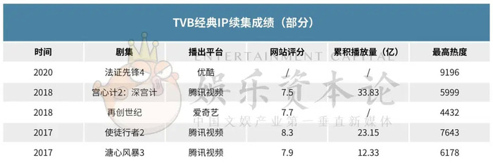 2016年,爱奇艺与TVB达成战略合作,最先通过《再创世纪》项目掀起IP重启的潮流。2018年,优酷与TVB、TVBC共同推出“全球同步剧系列”,腾讯视频也提出“打造新港剧”的目标。此后,港剧得以在内地获得更多机会。