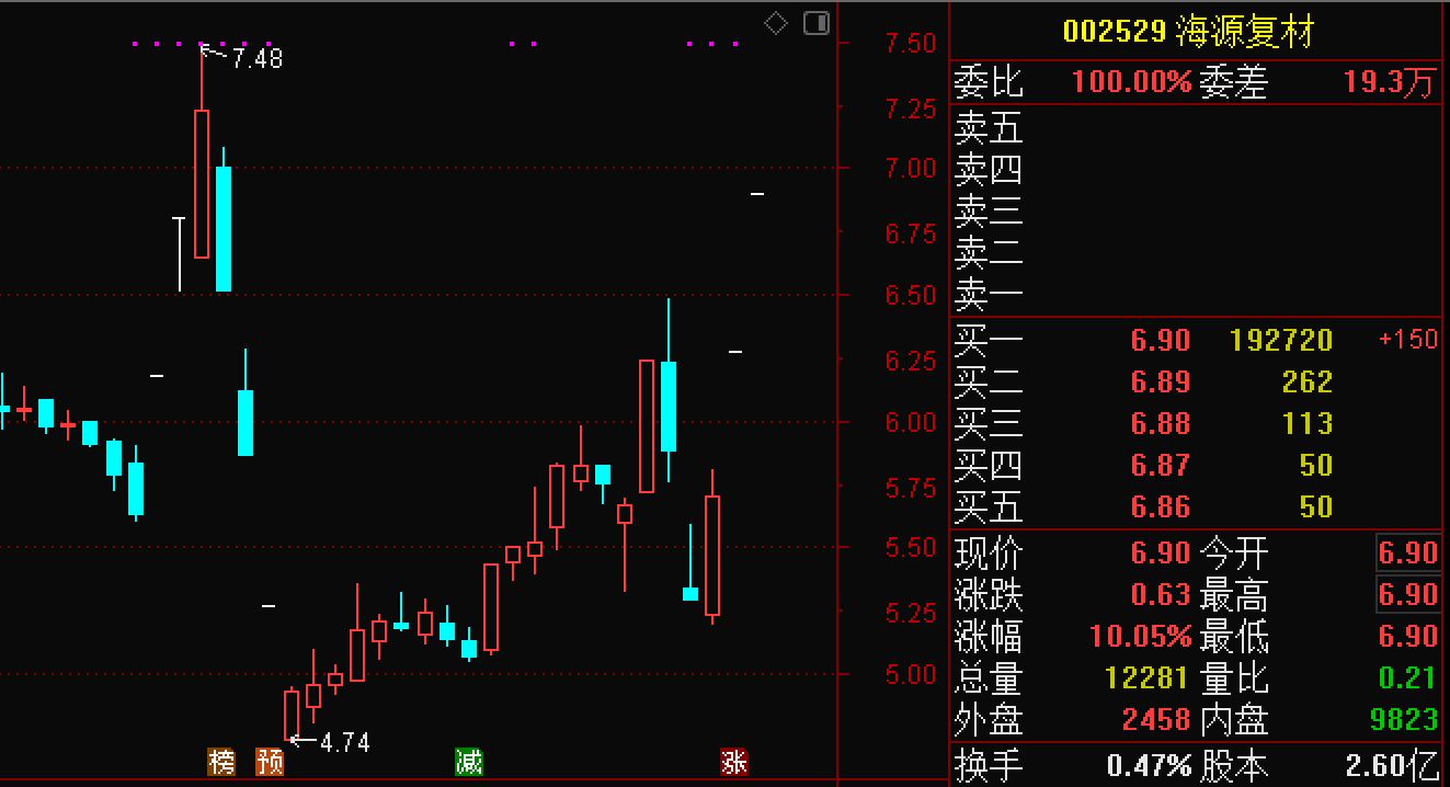 彷徨之际,3月2日的海源复材再度出现大涨,且3月2日至3月4日这3个交易日里,累计涨幅又有30.68%,其中3月3日和3月4日还是“一字涨停”,市场的热情从涨停板排队的热闹程度可见一斑。