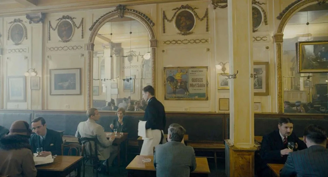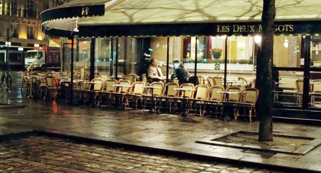 据说导演奥利维·那卡什之所以选择在午夜时分,把这一重要场景放在著名的双叟咖啡馆拍摄,正是看重名店背后的地标性文化,营造出意想不到的讽刺喜剧效果。