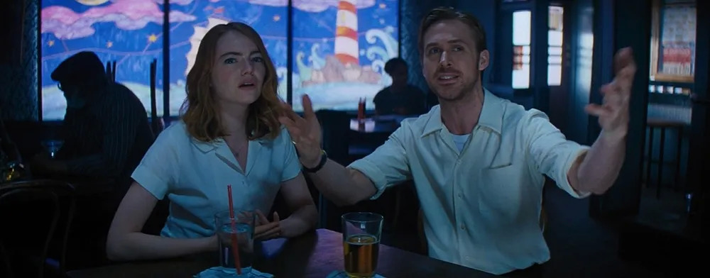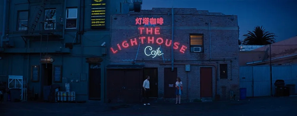 灯塔咖啡馆是影片中最具梦幻色彩的地标之一。热爱爵士乐的塞巴斯蒂安将米娅带到这间海滨咖啡馆,畅聊起自己的“纯爵士”,还有未来要开一间爵士乐俱乐部的梦想。