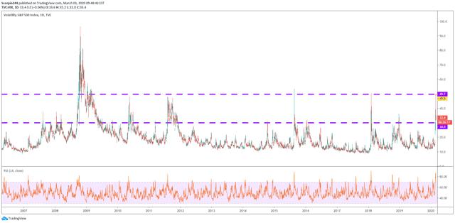 每一次vix接近50,那都是至少一年时间以上的底部,这一次可能也不会是例外。上周五最恐慌的时候,vix高达49.48,达到了历史级别的恐惧水平。虽然这并不表示,标普500指数很快会出现逆转,可能长期仍然会继续震荡,但这却在告诉我们周五的低点可能已经触底。
