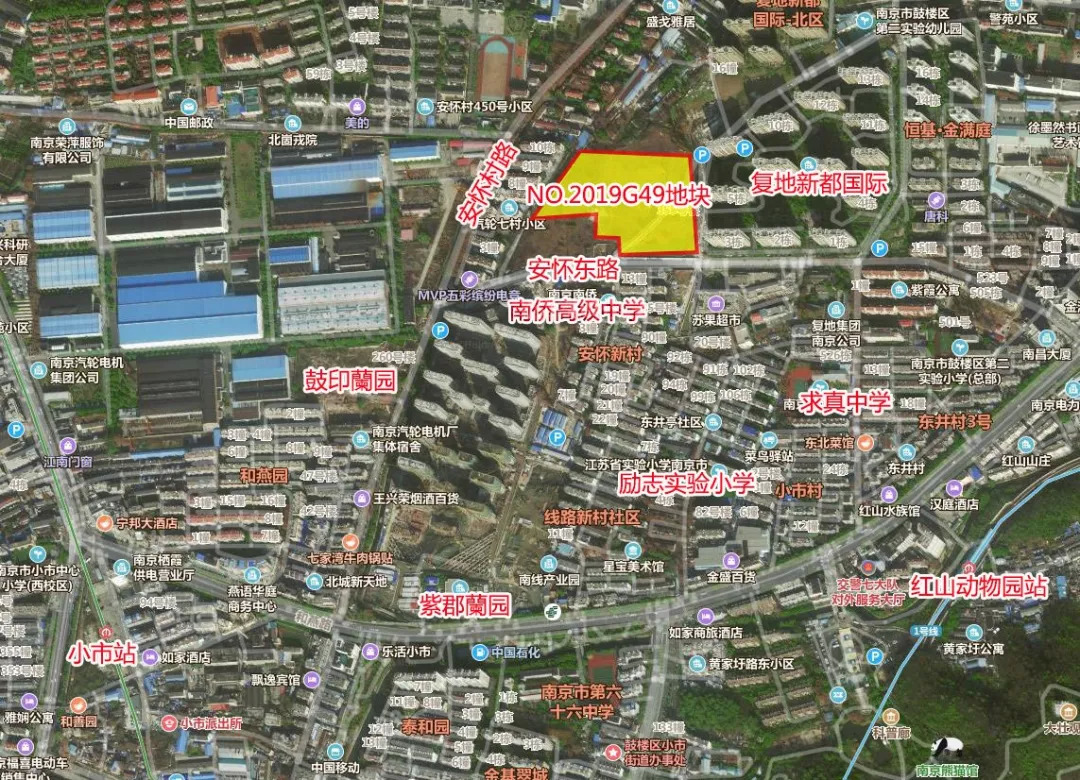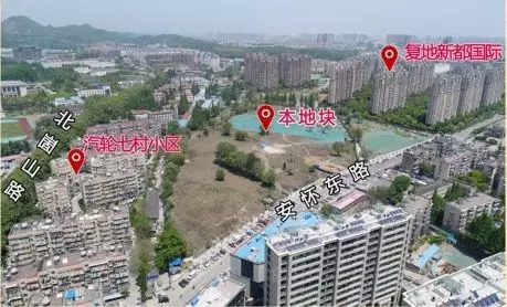 此外,地块紧邻复地新都国际,南侧为已收官的葛洲坝招商紫郡兰园项目和葛洲坝阳光城鼓印蘭园,西南侧配建有小学一座,周边人居氛围较为成熟。