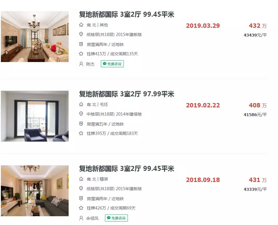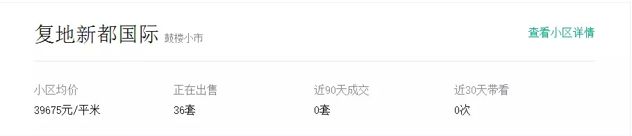 复地新都国际作为当地改善老盘,链家二手房挂牌均价为39675元/㎡,最高成交价高超43000元/㎡,含装修。