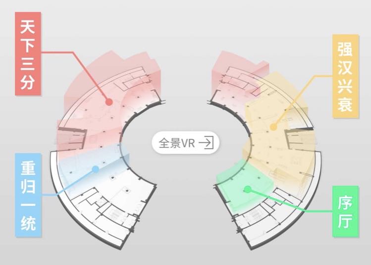 该展览曾让诸多三国历史爱好者期待不已,孰料刚开展便遇到了新冠肺炎疫情。尽管不能亲临现场,观众仍可以利用线上平台一览此次特展的精华。“中华世纪坛艺术馆线上导览”微信小程序中囊括了46件(组)重点展品,由“强汉兴衰”“天下三分”“重归一统”三部分内容串联而成,每部分都配有专门的语音讲解和文字说明。除此之外,特展还运用全景展示技术将实体展厅在线上进行了还原,使用大屏幕观看效果更佳。
