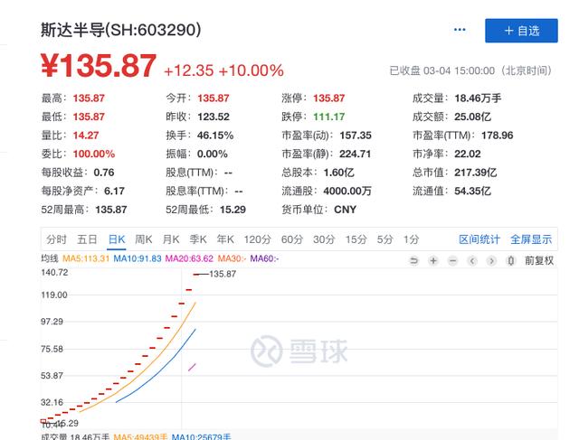 自2月4日上市以来,斯达半导用22个交易日涨停达到翻10倍成果,并且至今仍未开板。