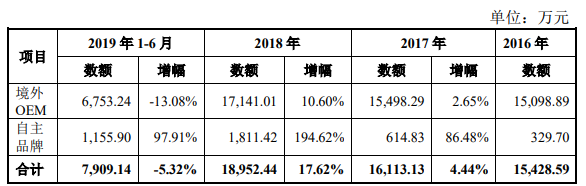 公司目前海外业务主要分为境外OEM和自主品牌两部分,其中以境外OEM为主。近年来,海外业务总体增长缓慢,2017年仅有个位数增长,2019年上半年呈现负增长。在海外自主品牌方面,公司从2015年开始,逐步在东南亚、印度、中东等国家和地区以经销商方式进行拓展,由于基数较低的原因,取得了较快的增长,但相比整个公司的业务体量,仍是九牛一毛。