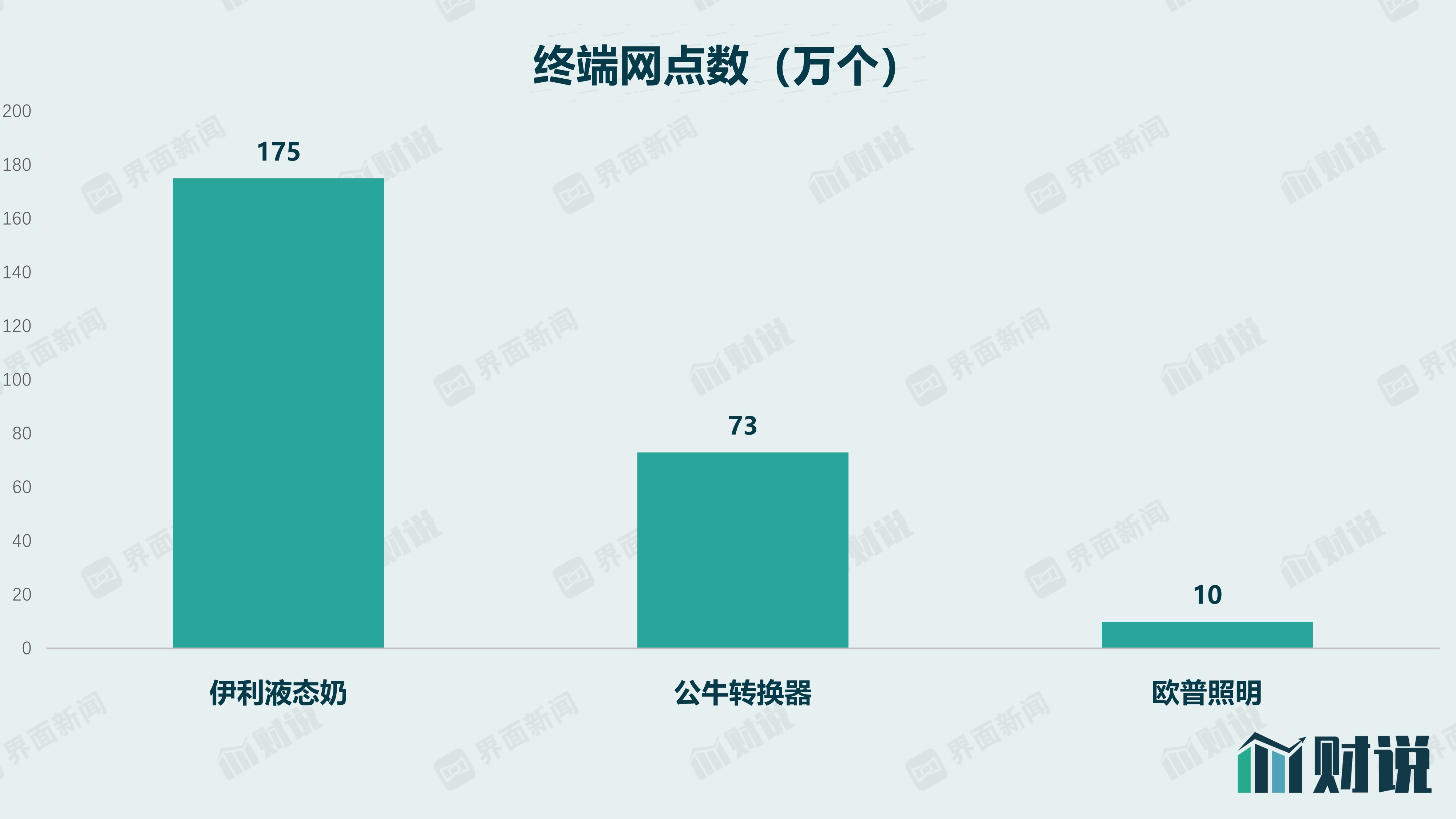 下面这组对比很能突显出公牛在渠道运营方面的功力:目前伊利液态奶终端网点数有175万个,公牛转换器为73万个,公牛在照明领域的竞争对手欧普照明仅有10万个。