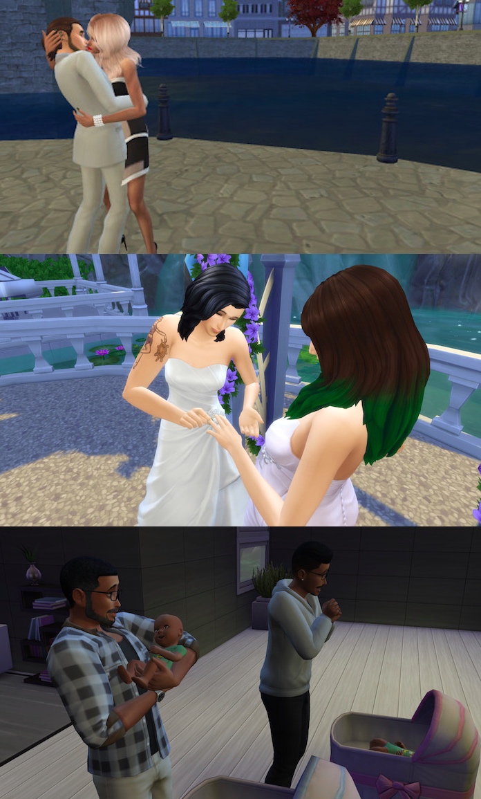 既然与现实这样相似,那么粉丝在玩《模拟人生》时玩的是什么呢?本文认为,《模拟人生》的精彩之处就在于,人们可以在其中进行流行文化的“同人创作”,并见证浪漫爱情多元化蓬勃发展的可能。