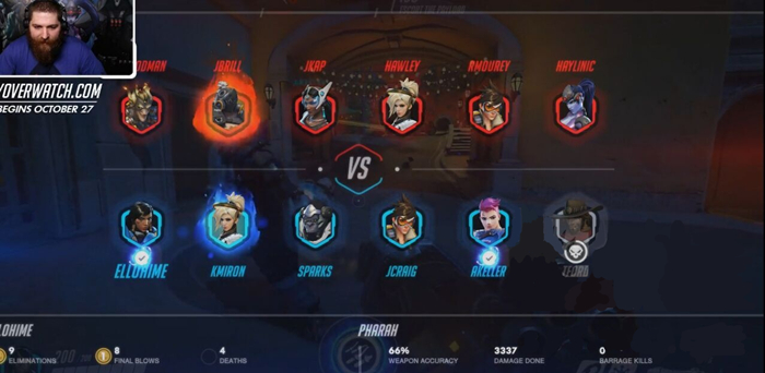 本场直播安排在暴雪本部进行,Twitch平台的两位主播Haylinic和Ellohime分别加入《守望先锋》开发人员的队伍中。摄像机从两个不同视角拍摄的游戏直播画面在长达两小时的时间中让玩家们一饱眼福,同时,也解答了测试之前玩家们对游戏的种种猜想。