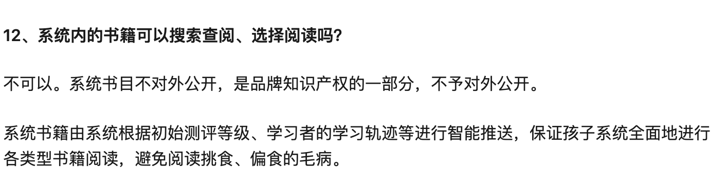 该产品的一大卖点在于其内置1.9万本英文读物,可供孩子长期学习。但对系统内的具体书目,iEnglish官方却闭口不言。