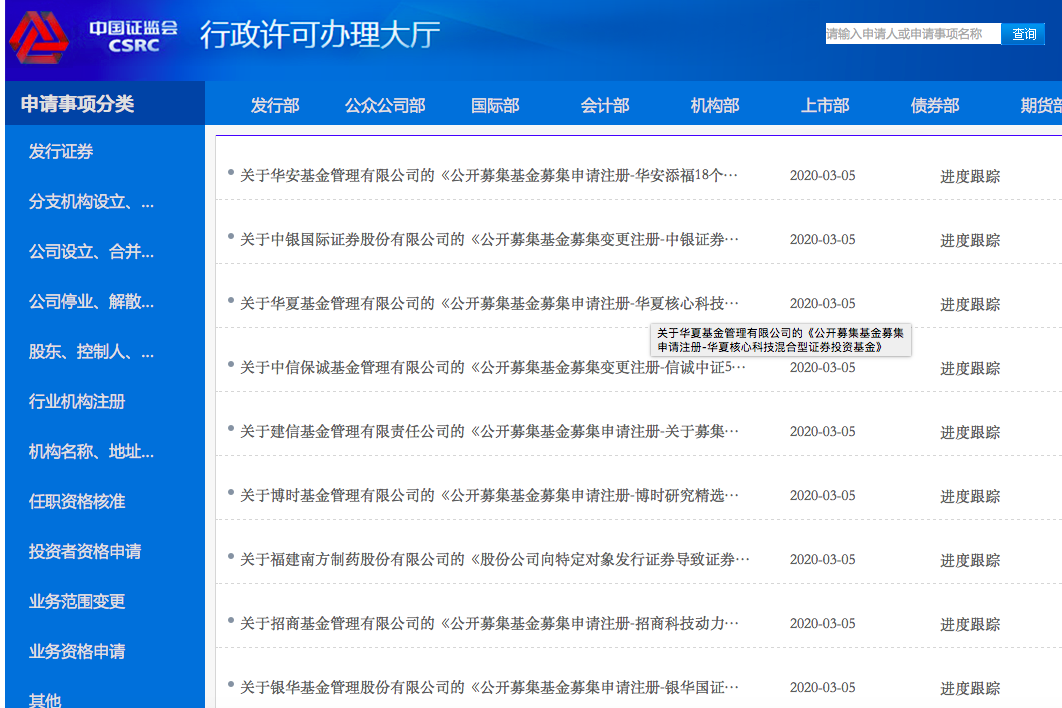 3月2日,有媒体报道称,监管层对部分公募基金下发窗口指导,要求对新能源、科技创新、半导体、云计算等等泛科技之类的权益基金产品,均暂缓申报受理。当日晚间,权威人士通过上海证券报、证券时报等媒体澄清表示,该报道不属实,监管部门并未暂缓受理科技类基金产品的申报。证监会网站亦显示,3月5日仍然在接受科技类基金的申报材料。