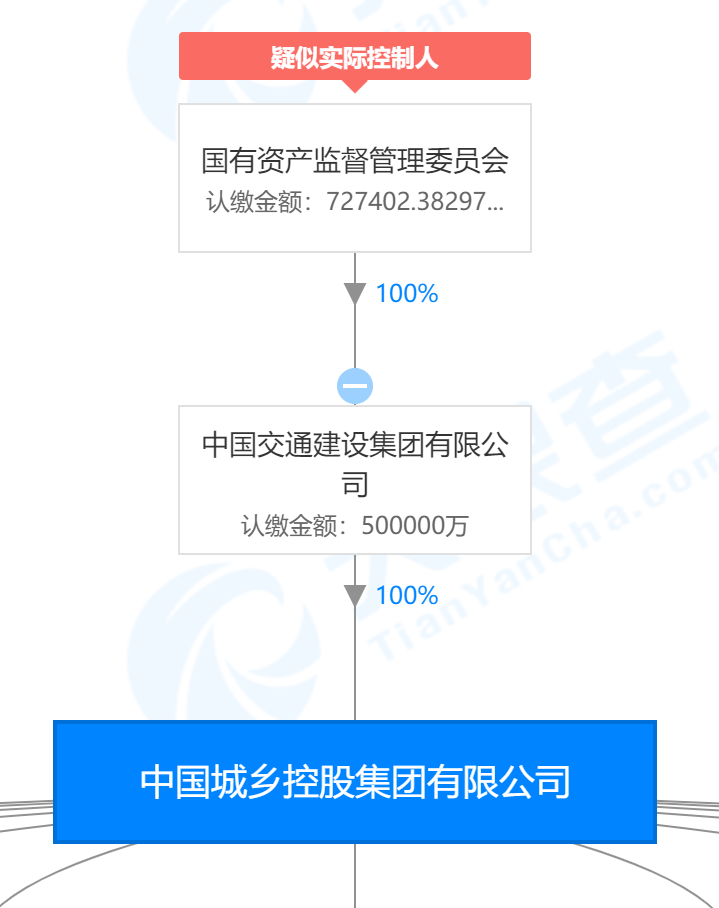 中国城乡成立于1984年9月19日,注册资本50亿元,法定代表人胡国丹,该公司由中交集团100%持股,而中交集团由由国资委100%控制。