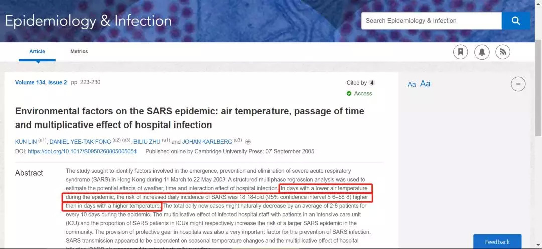 图片来源:Environmental factors on the SARS epidemic: air temperature, passage of time and multiplicative effect of hospital infection