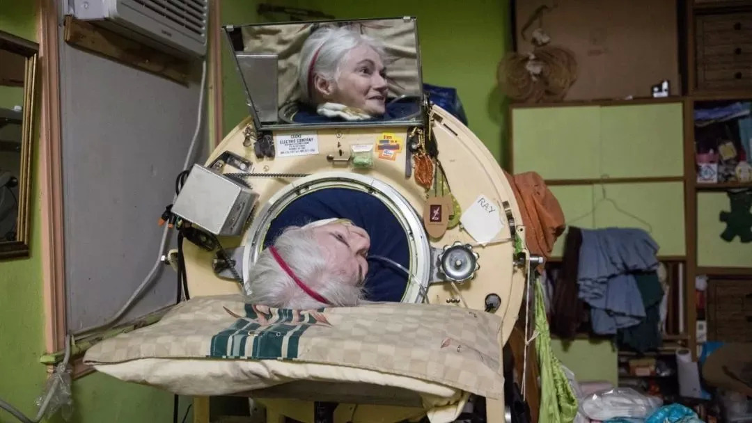 美国的玛莎安·利拉德从 1953 年确诊开始,在单人床大小的的「铁肺」罐里生活了 60 多年——