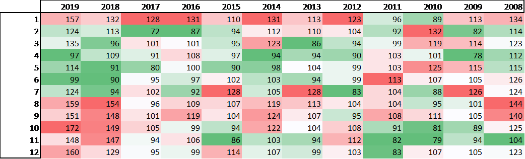 答案是不能。当我们把离职数按月细分之后,我们就发现了有意思的事情:在过去的12年中,每年的1月份都是CEO离职高峰(也就是文章最开头的那张热门图片所显示的现象)。