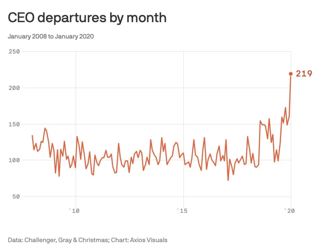 “美股这一轮超长牛市,背后最大的推手不是川普减税,不是企业盈利的增加,而是管理层们滥用的回购。从2019年开始,美国上市公司迎来了CEO离职潮,在今年1月份数据更是创下了历史新高。这些CEO捞足了吃饱了,知道风暴要来了,就留下烂摊子走人了。”