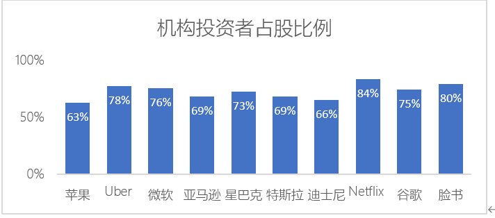 想要“割韭菜“,自然要看看“韭菜”在谁手上。与A股80%以上的玩家都是散户不同,美股的机构投资者拥有78%罗素3000(宽基指数)公司的总市值,80%的标普500公司的总市值。以那些我们耳熟能详的公司为例: