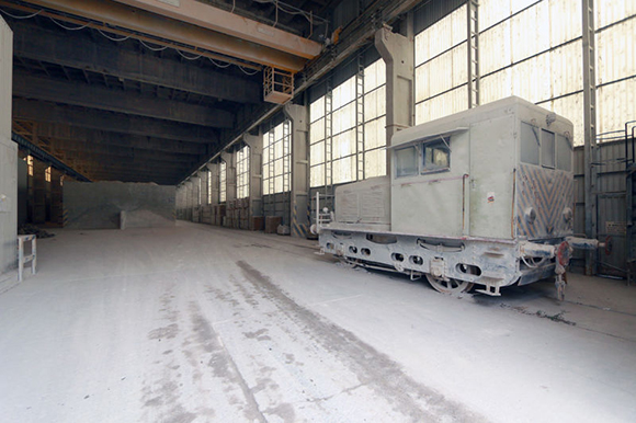 ▼这台柴油机车用来搬运成吨重的高岭土
