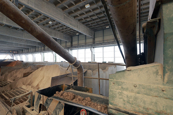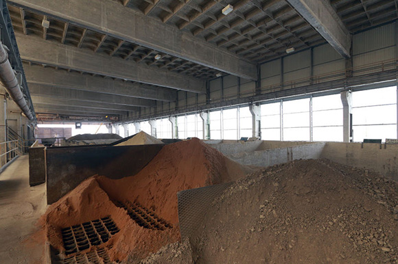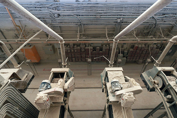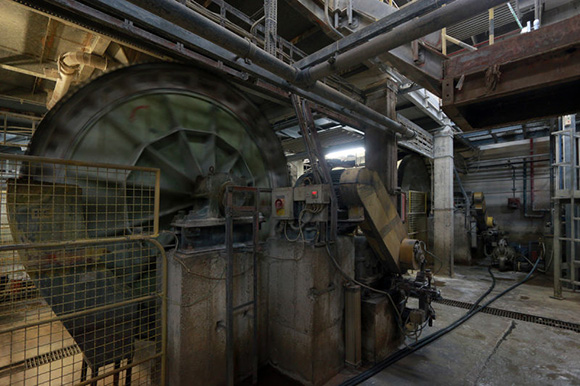 ▼用来碾碎原材料的鼓状磨粉机