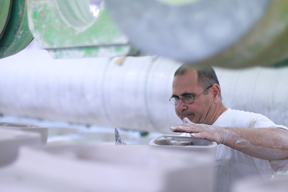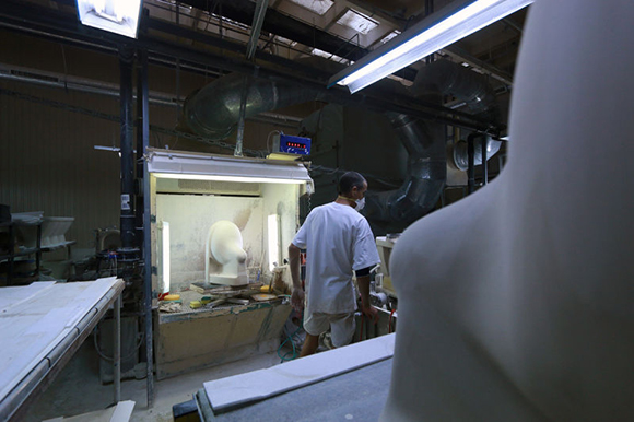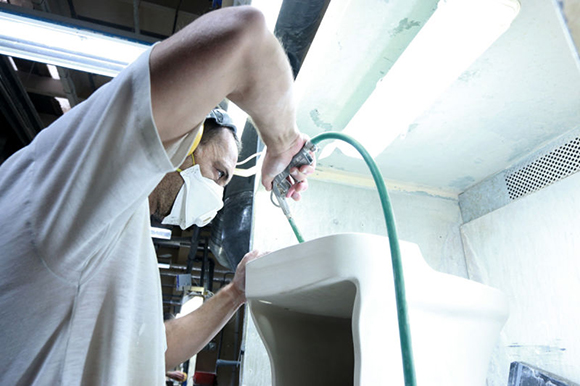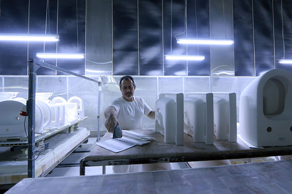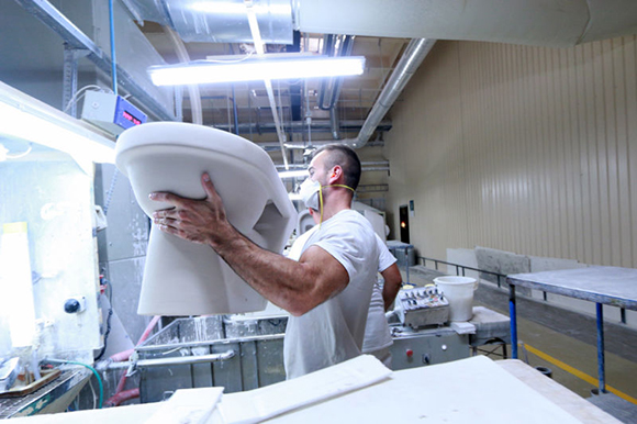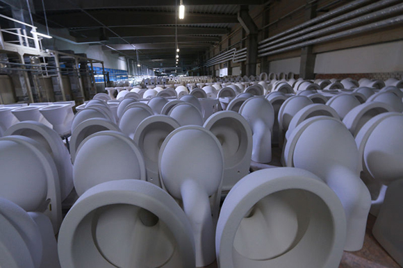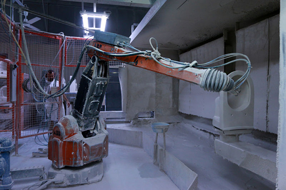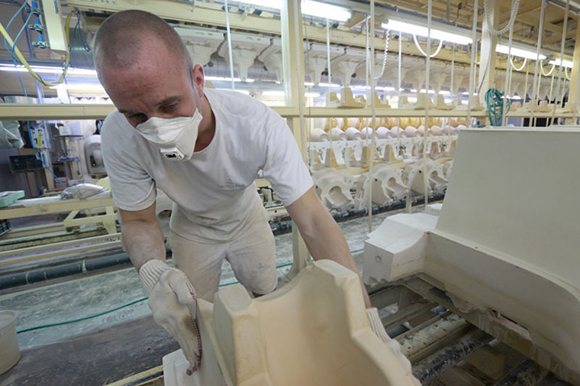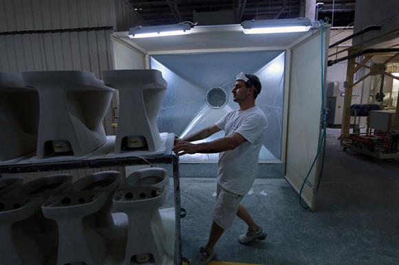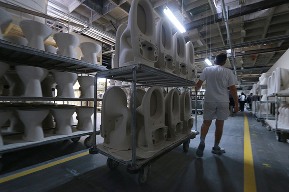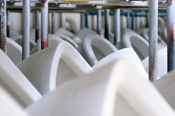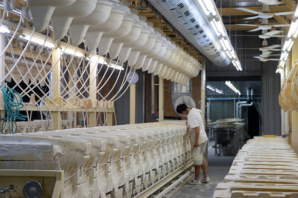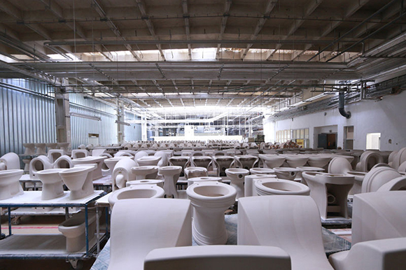 马桶的制造过程令人惊奇,从高岭土粉到光泽、性感(去问赫尔穆特·牛顿(Helmut Newton)吧!)的陶瓷,需要五天的工作。这么大的工厂,每天生产4000件产品——那几乎是150万件的年产量,却由仅仅750到800个工人完成。