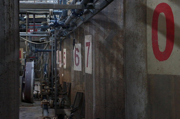 ▼有50年历史的钢筋混凝土天花板看起来很酷