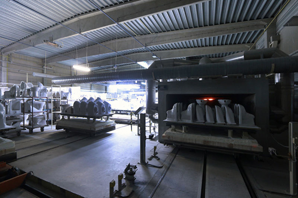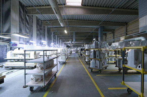 ▼在干燥前人工清洁铸件