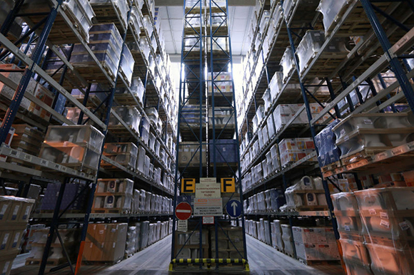 ▼包装过的产品的巨大仓库