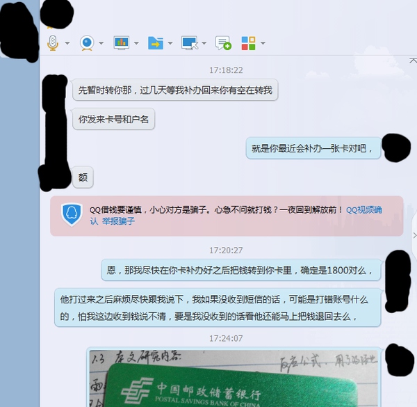 骗子盗了A的大学同学B的QQ号,然后并没有向A借钱,而是说,自己的银行卡丢了,一个亲戚要给他打钱,先存到A的卡上。