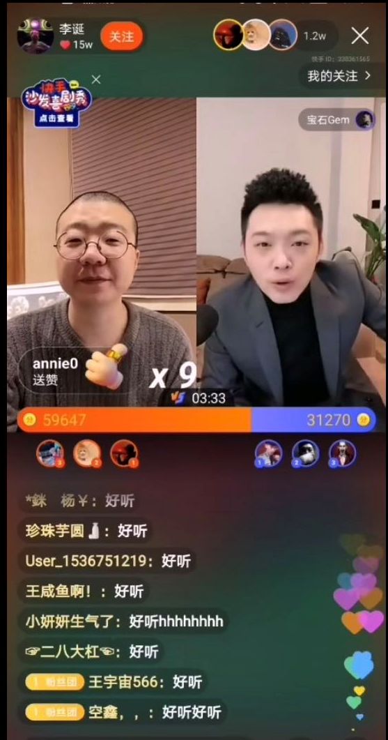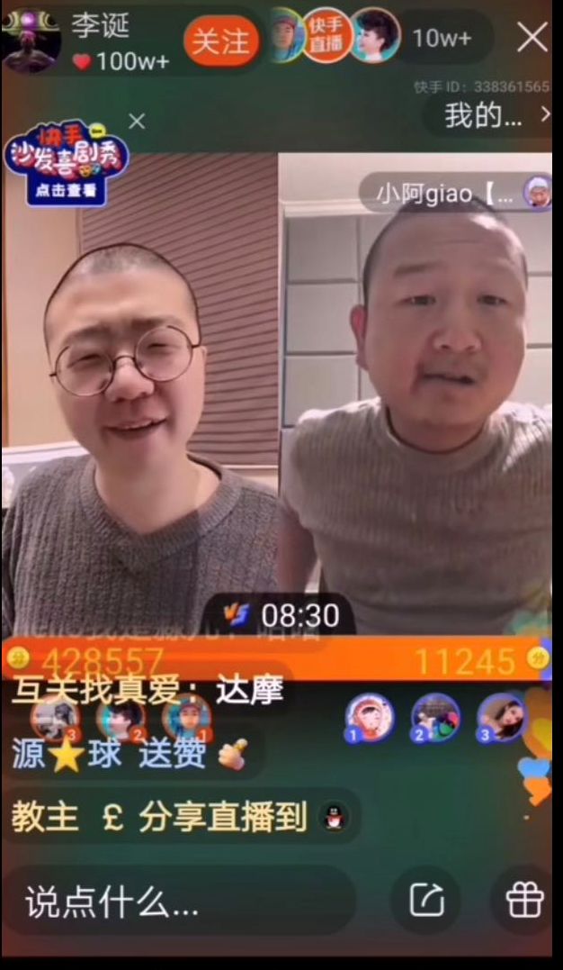 李诞与快手“二驴”连麦直播,香港影星陈小春参与打榜