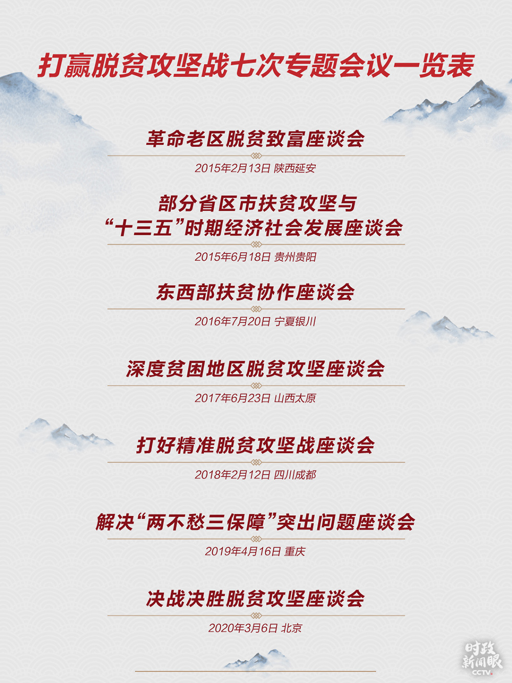 为了这个郑重承诺,五年来,习近平总书记已经开了7场脱贫攻坚专题座谈会。