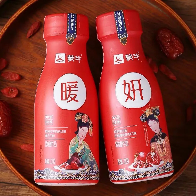 “暖妍酸奶”是蒙牛推出的低温酸奶新品,主打女性养生市场,有阿胶红枣枸杞红糖复合口味(暖瓶)和胶原蛋白石榴樱桃复合口味(妍瓶)两个SKU。暖瓶甄选阿胶红枣等养生食材,主打“滋补”,妍瓶则添加胶原蛋白等热门成分,主打“美丽”。