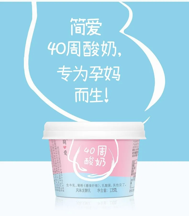 简爱专门针对孕妈研发出一款40周酸奶,无糖无添加剂,宣称可以帮助孕妈补充充足的蛋白质和钙质,并且高营养高钙无糖可以促进排便,使得孕期也能更方便安心。