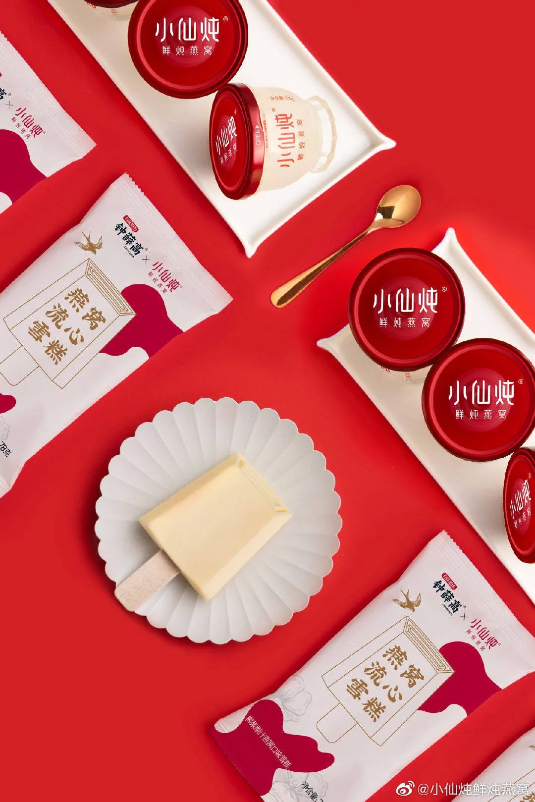 钟薛高×小仙炖联名推出的“燕窝流心雪糕”瞄准了女性养生场景,清甜不腻的小仙炖鲜炖燕窝与甄选的印泥椰浆和纠缠融合,辅以法国梨子果泥,美貌与美味兼得,专为滋补养颜的女士定制。